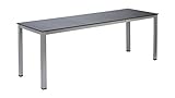 Die Tischplatte in Schieferoptik ist optisch sehr ansprechend und zudem noch pflegeleicht. Dieser Tisch ist sehr gut geeignet für den dauerhaften Einsatz auf kleinen Flächen. Der wetterfeste und UV-beständige Tisch verfügt über einen verstellbarem Tischfuß, der Bodenunebenheiten ausgleicht. Ein Qualitätsprodukt von einem Markenhersteller, aber sicherlich kein Schnäppchen.
